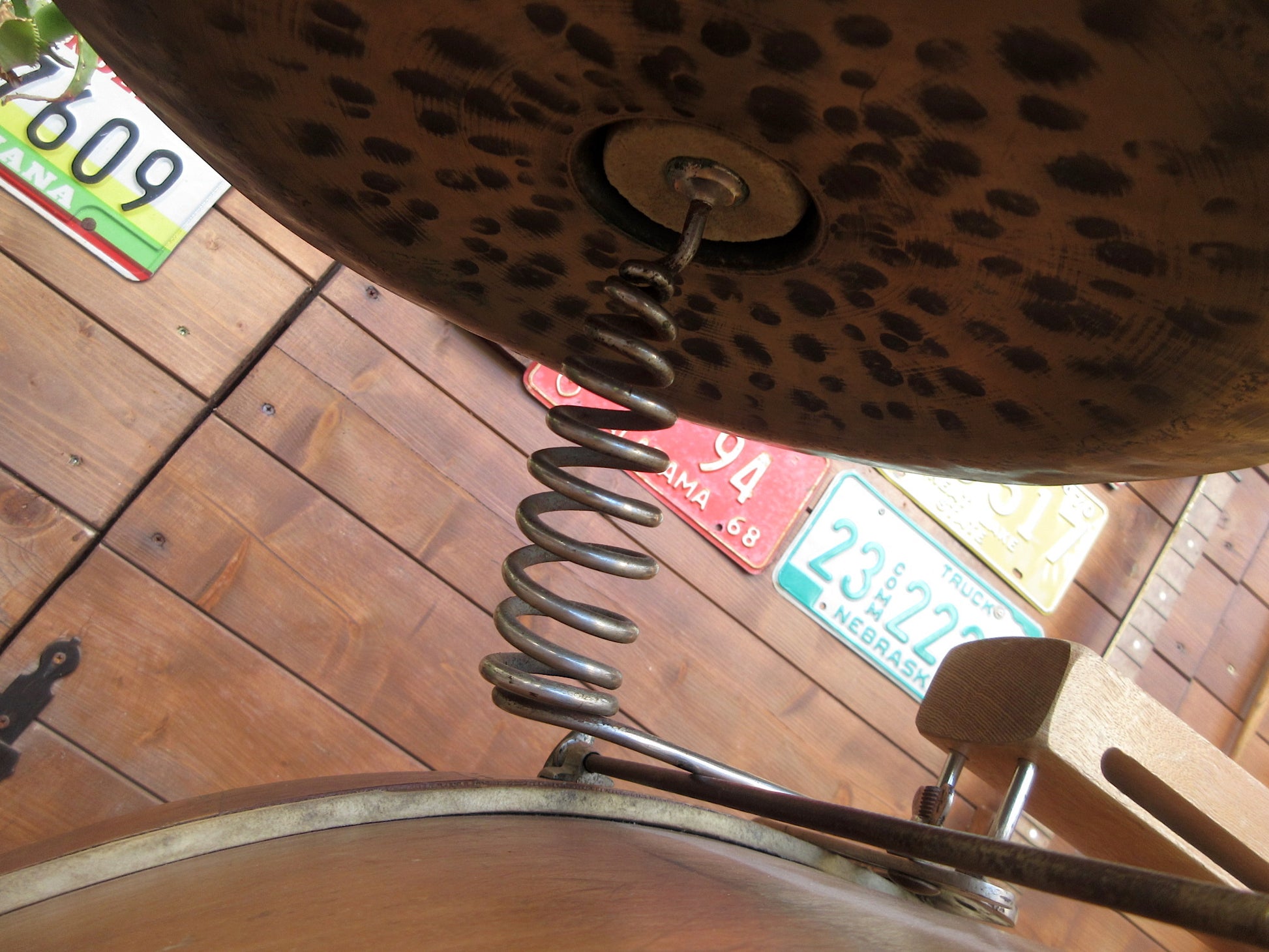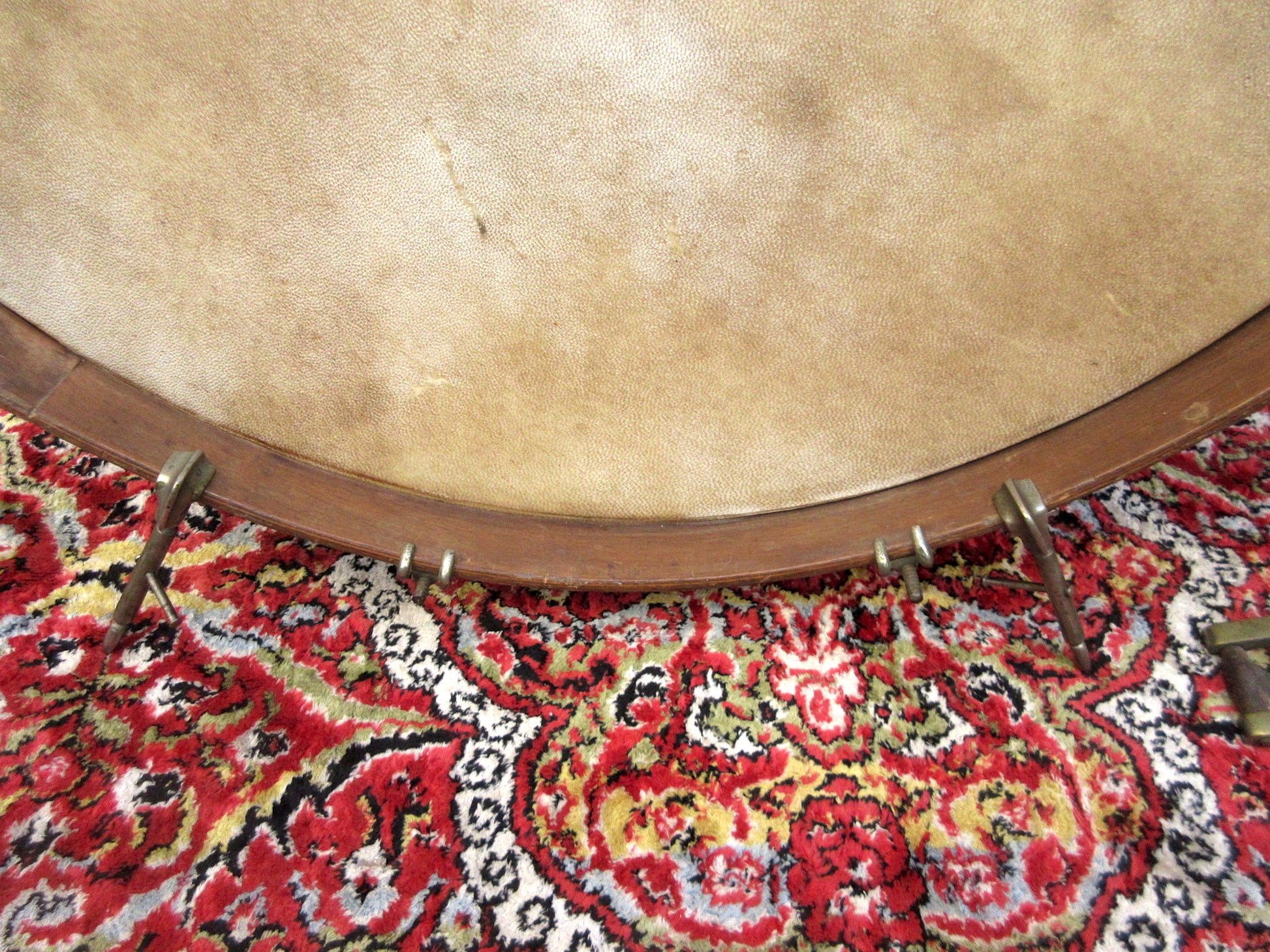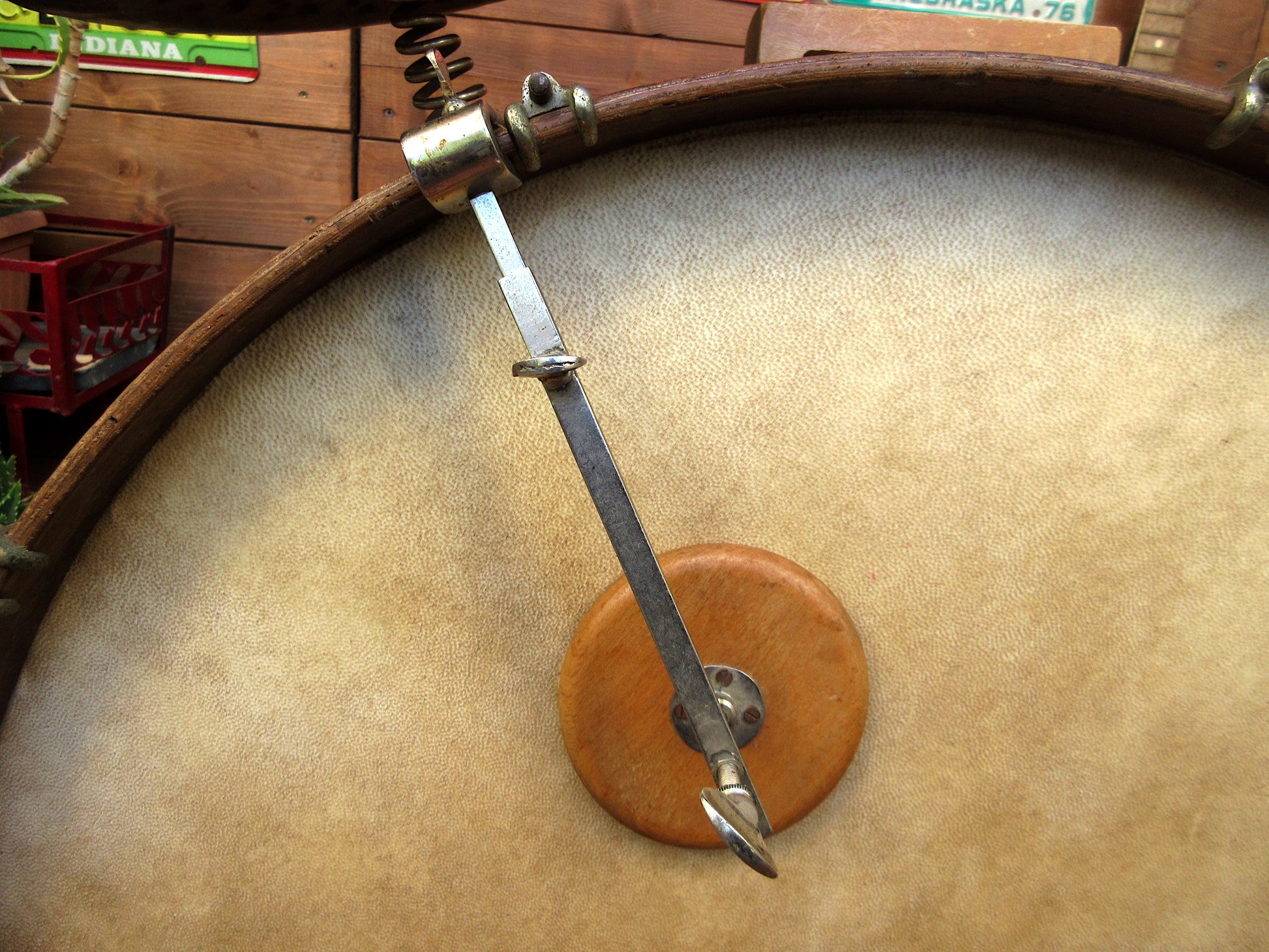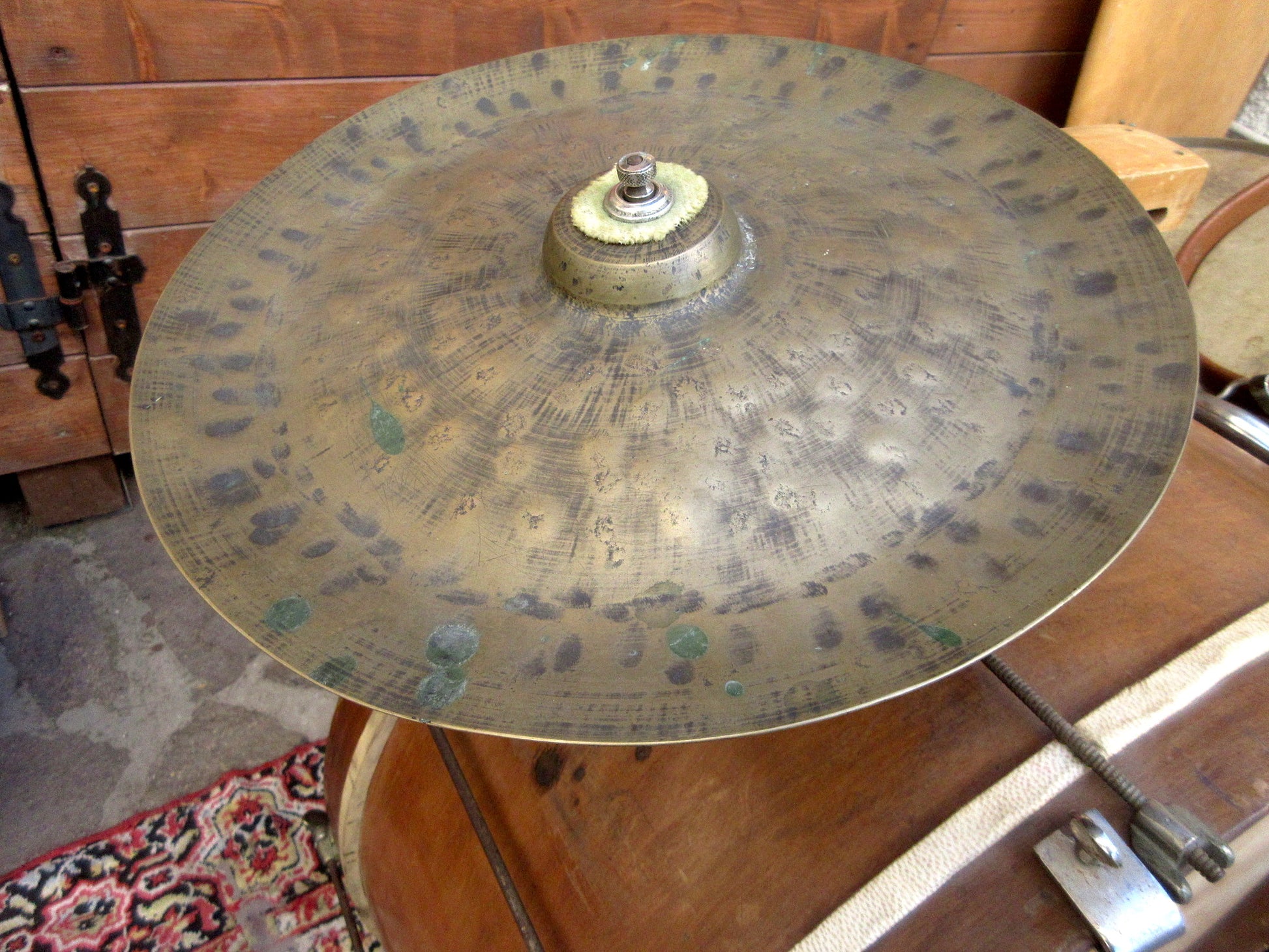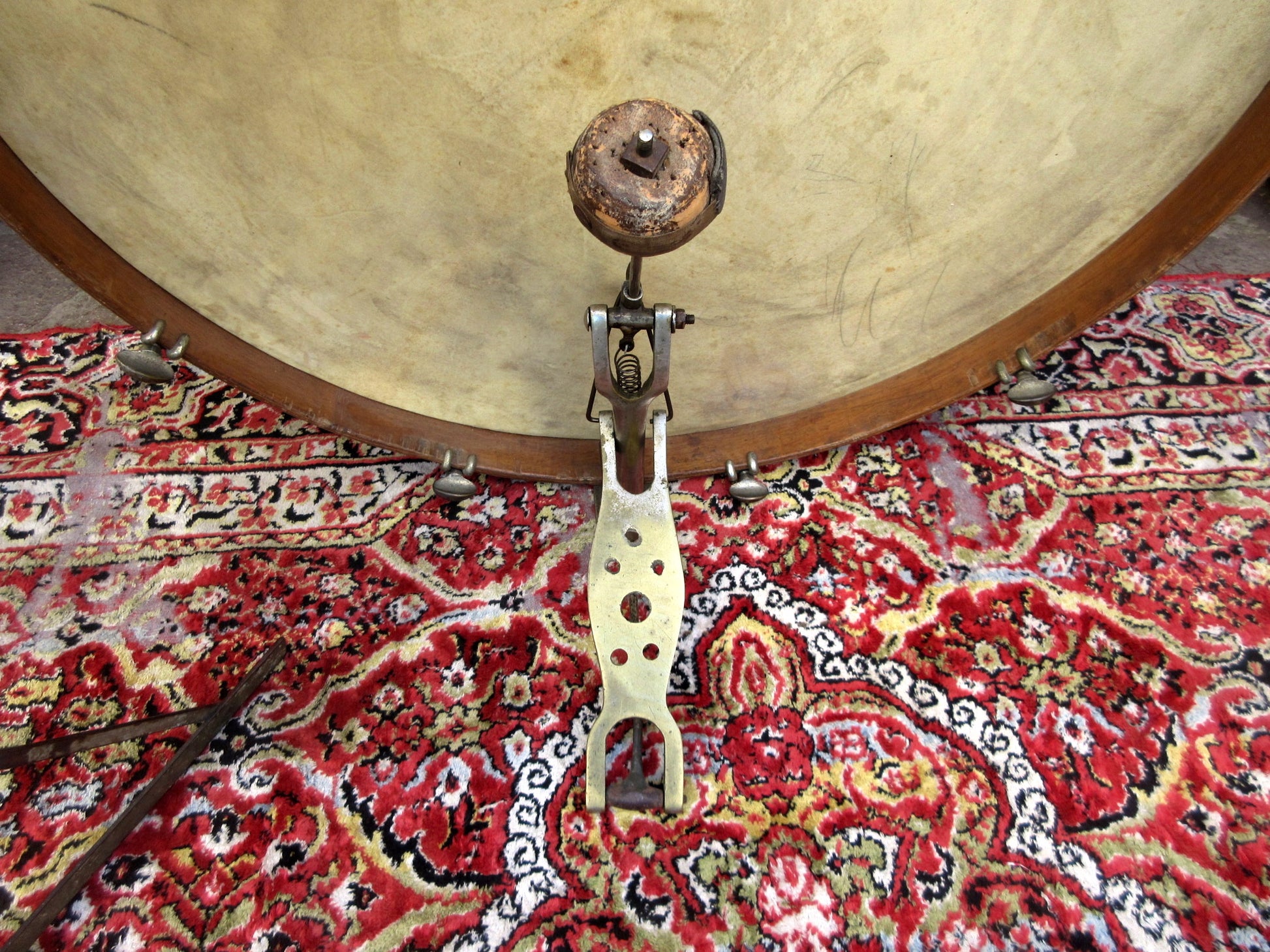 Questa stupenda batteria risale ai prim anni '20, è di marca ignota e produzione probabilmente europea, ed è composta da una cassa di circa 25”x10”, un piccolo tom 9,5”x5”, un rullante 12”x3” in ottone, un piatto cinese da 12”, un woodblock, un bellissimo pedale per la cassa e un supporto per il rullante.