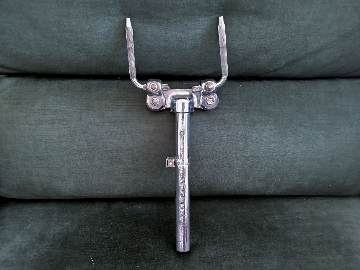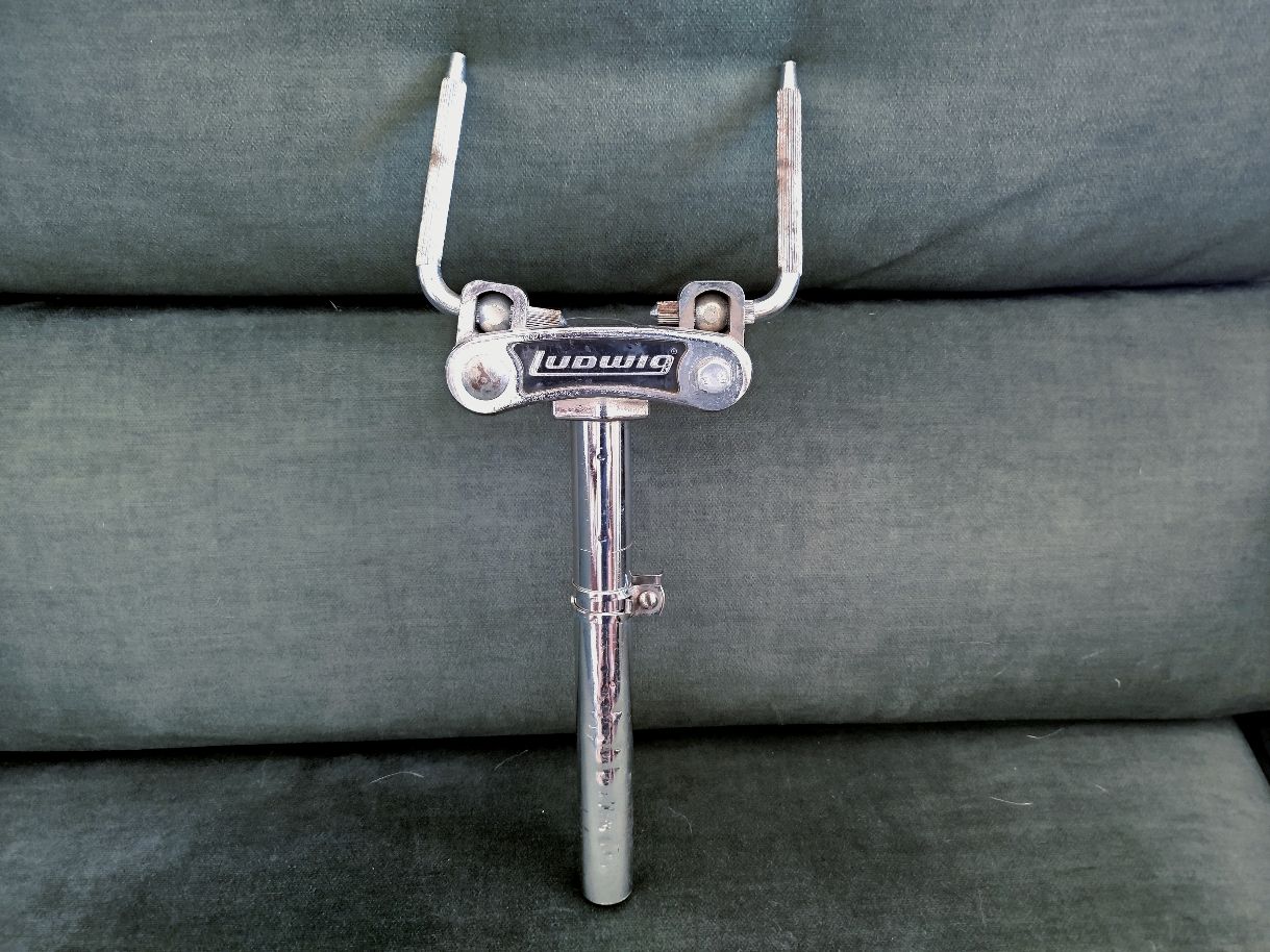 Il supporto tom utilizzato nella maggior parte delle foto è quello moderno, ma verrà ovviamente fornito quello originale, visibile nelle ultime due immagini. Badge Blue Olive con estremità appuntite, sordine a feltro e manopola tonda, blocchetti Classic Large , zampette cassa ricurve e a sezione quadrata piccola modello 1306, come in uso dal 1970 al 1978. La finitura Mahogany Cortex fu in catalogo dal 1973 al 1982 e successivamente dal 1988 al 1995. E' un rivestimento plastico piuttosto rigido, e sul timpano possiamo vedere una crepa, abbastanza frequente su questi wrap. Niente di grave nè dal punto di vista strutturale nè da quello estetico, fortunatamente.