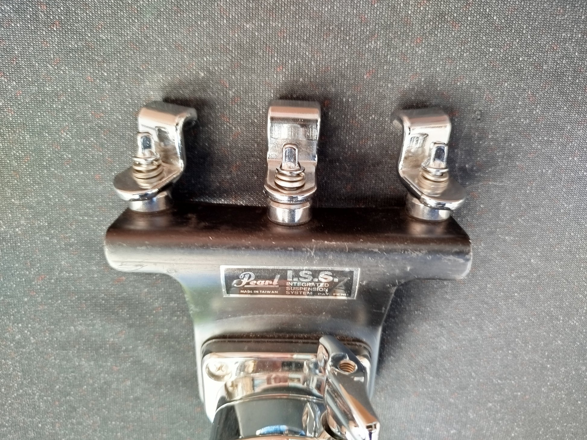 Dating back to the first series, it features three attachment points; it can be installed directly onto the tom hoop. When combined with a Pearl JG16 adapter, it will transform a tom into a bass drum or floor tom with sizes ranging from 12" to 16".
