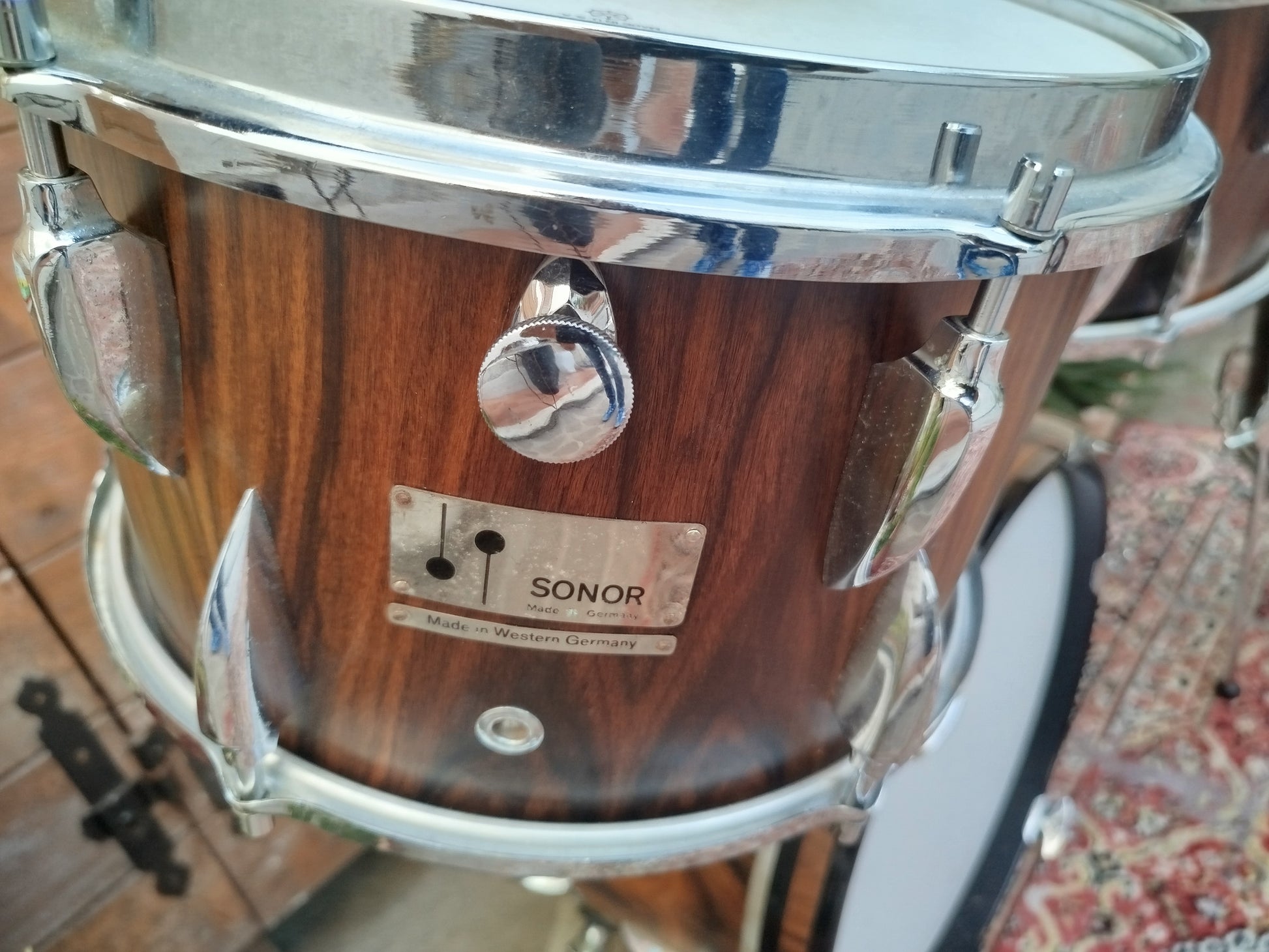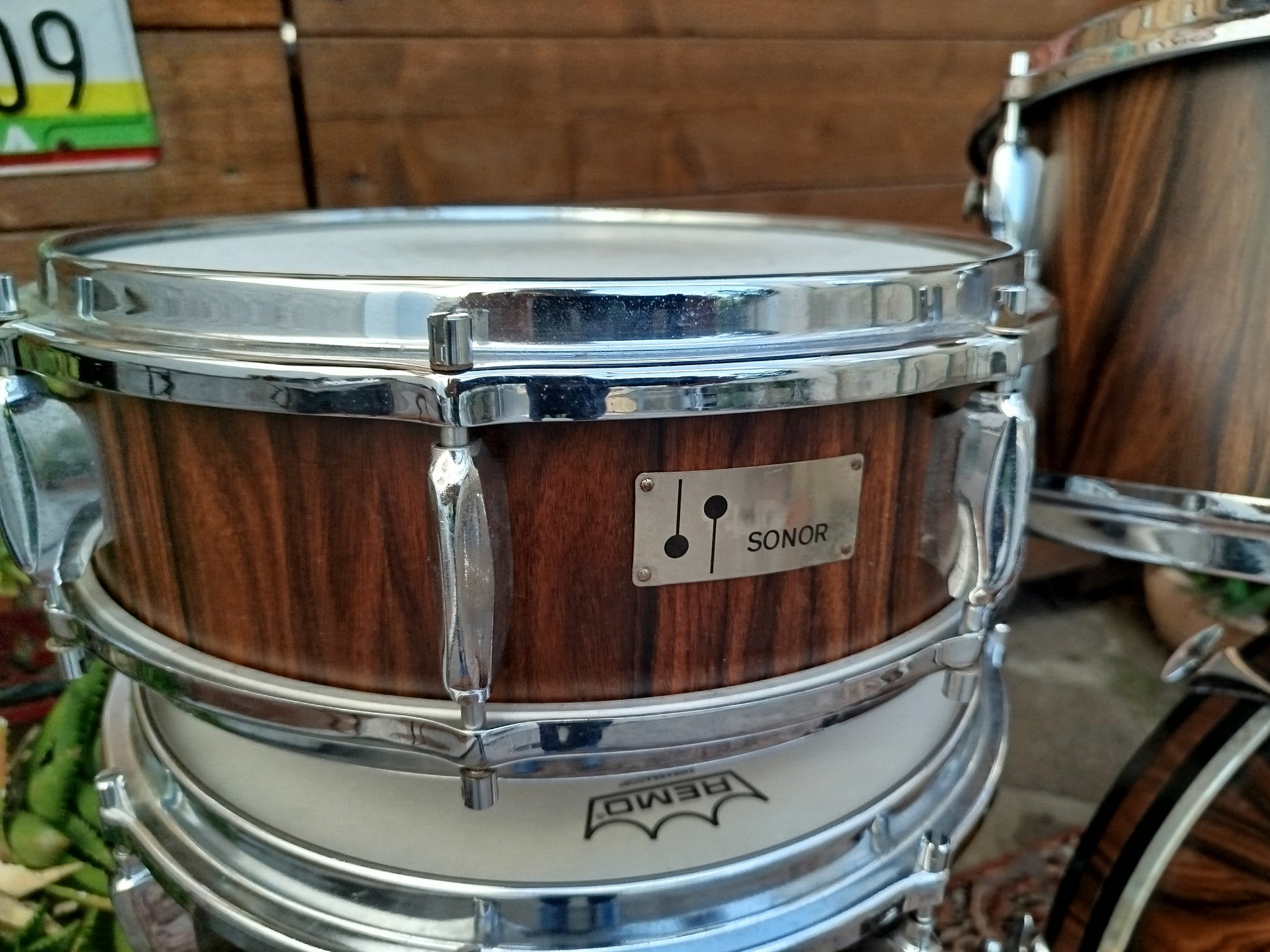 Raro set con cassa da 18", difficilmente reperibile e quasi mai illustrata nei cataloghi Sonor dell'epoca; era presente il modello New York K-101 con cassa da 20", ma generalmente la cassa da 18" veniva prodotta su richiesta.