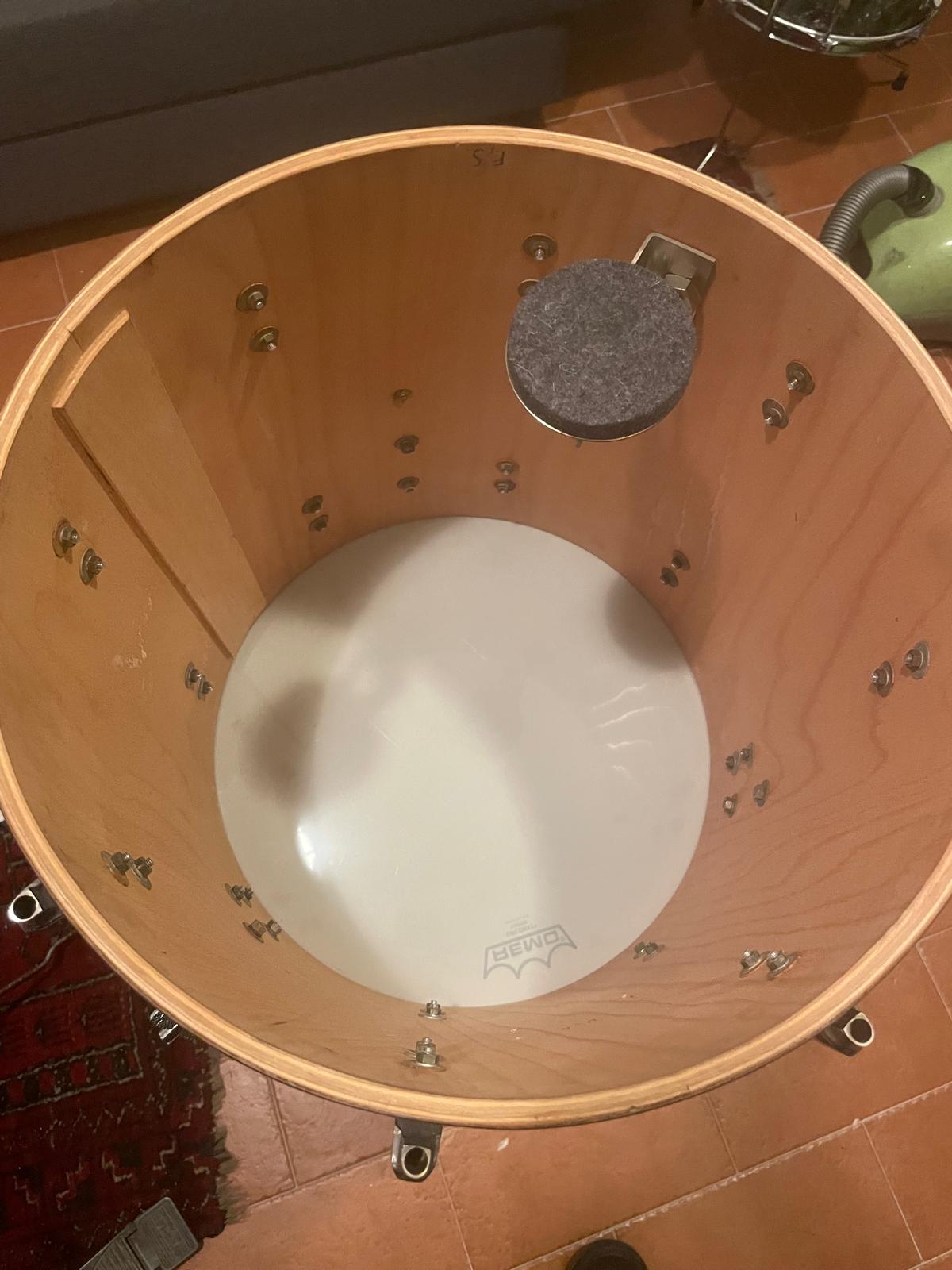 Una batteria con una configurazione estremamente rara e con un livello sonoro e costruttivo spettacolare. Al momento monta pelli Remo Ambassador Coated con intonazione alta tipicamente jazzistica, ma con un eventuale cambio di pelli e tensioni può affrontare diversi generi musicali. Uno strumento professionale, vintage ma sempre attuale.