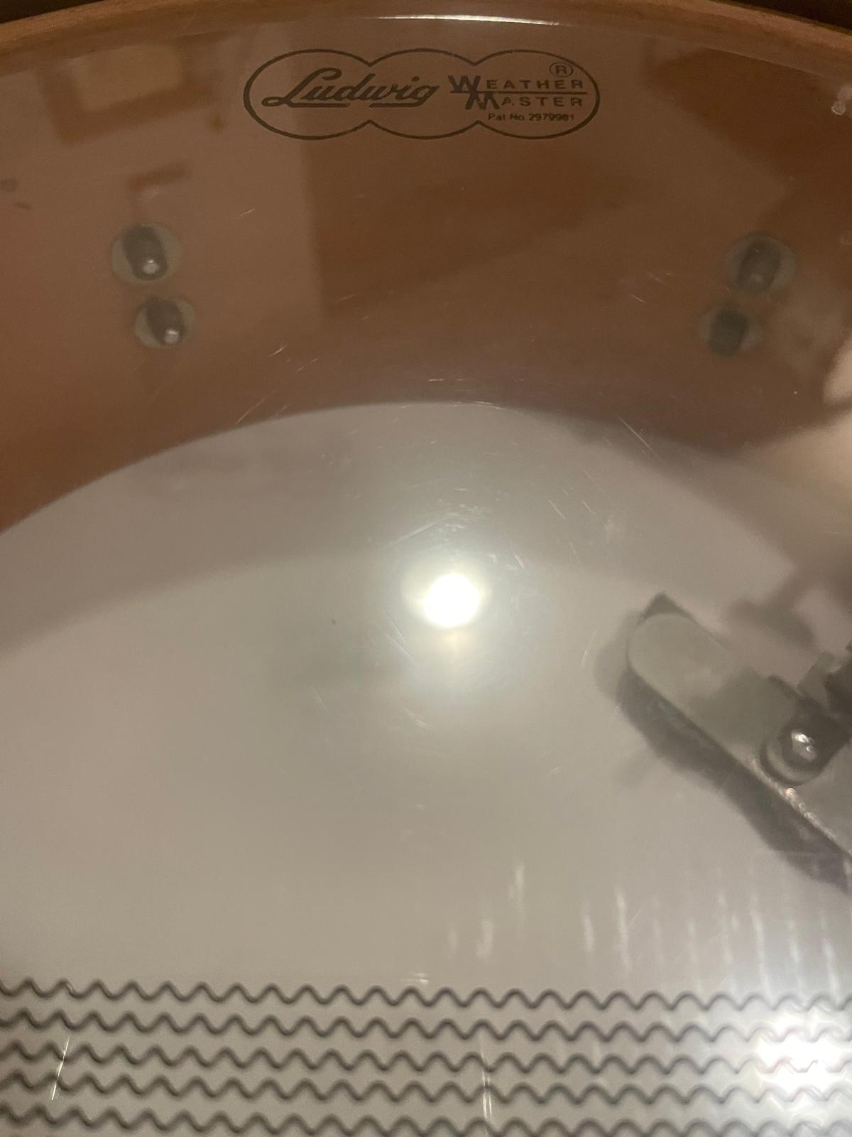 Fusti in faggio con bearing edge arrotondato, hardware in condizioni ottime senza ossidazioni. La finitura esterna è stata restaurata e lucidata da Roberto Villani (RV Drums), riportata ad un livello estetico eccellente.