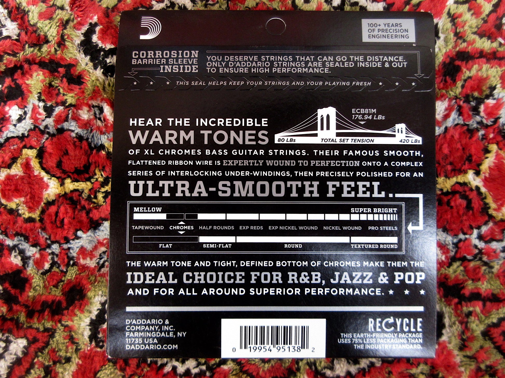 XL Chromes are among the warmest, mellowest bass strings we have to offer. These flat wound strings provide an ultra-smooth feel and a dark, yet warm tone, while allowing movement across the fretboard with no finger noise. Made with a high carbon steel core, Chromes stainless steel flattened ribbon wrap wire is expertly wound onto a series of interlocking under-windings, then precisely polished for unparalleled smoothness and a tonal presence which blends beautifully into the mix. This 45-100 Regular Light set is a medium scale version of our best-selling bass gauge, known for its even tension, bright tone, and tight low-end.