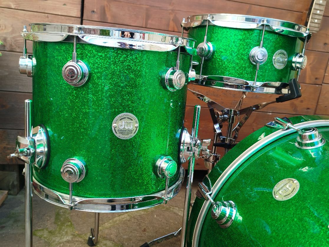 A parte il rullante, che ha il fusto in 10 strati di acero più sei di rinforzo, i fusti del set sono i classici DW molto sottili, anch'essi con rinforzi.