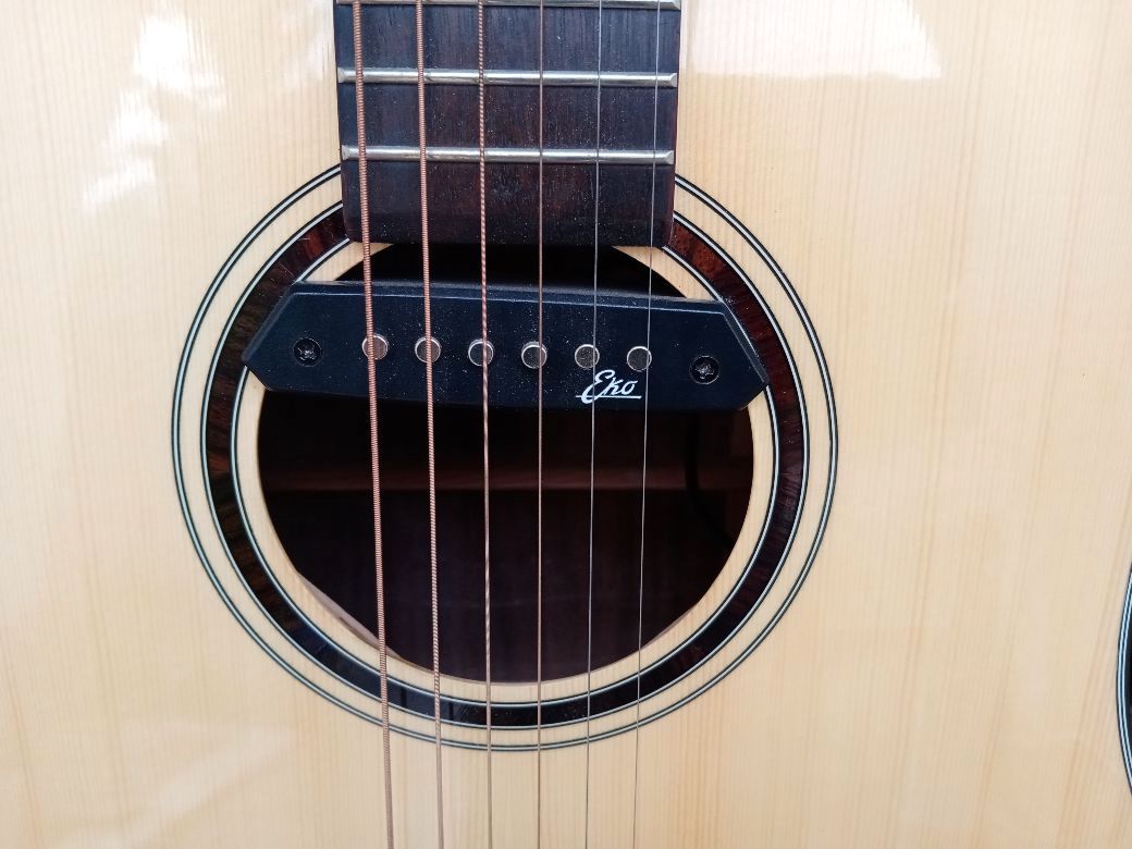 E' stata amplificata con un pick up Eko SC01 single coil passivo, un pick up magnetico dalla buona resa sonora.
