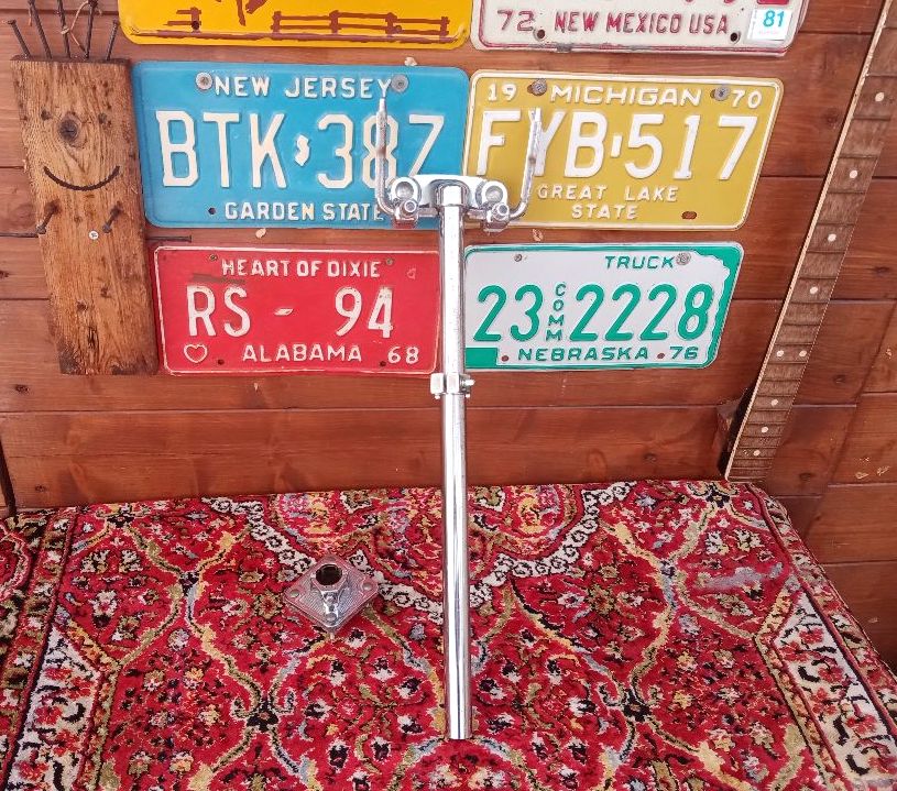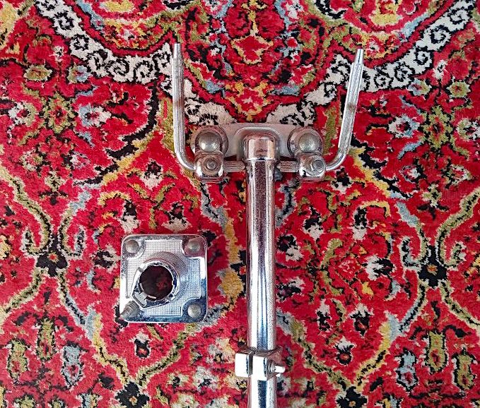 Supporto tom doppio con piastra, risalente agli anni '70; versione lunga 19". Completo di viti e memoria.