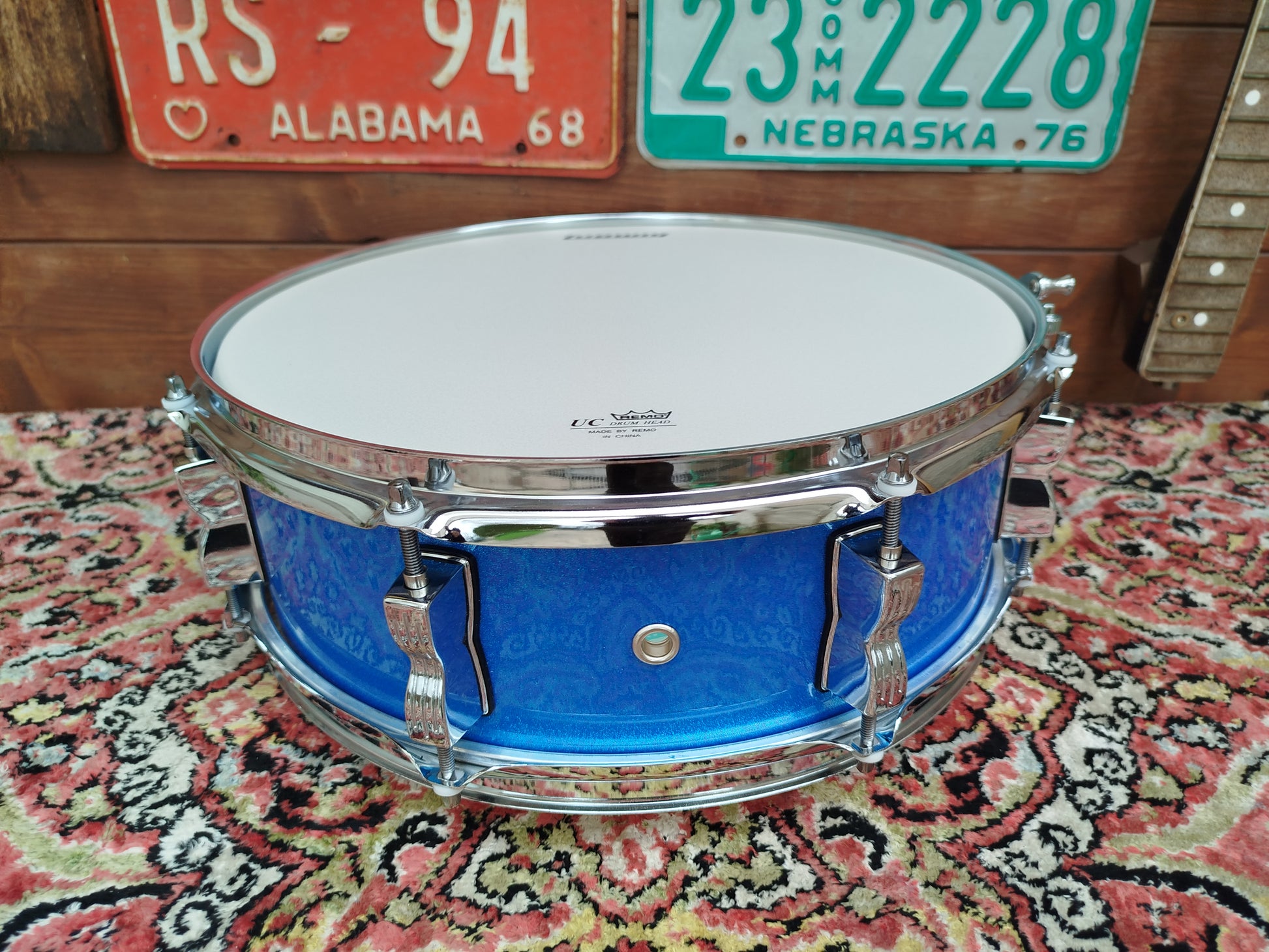 Il fusto è composto da 7 strati di pioppo con bordi a 45° rifiniti a mano, otto tiranti doppi, cerchi a tripla flangia da 1,6mm, leva tendicordiera semplice, ma fluida e robusta.