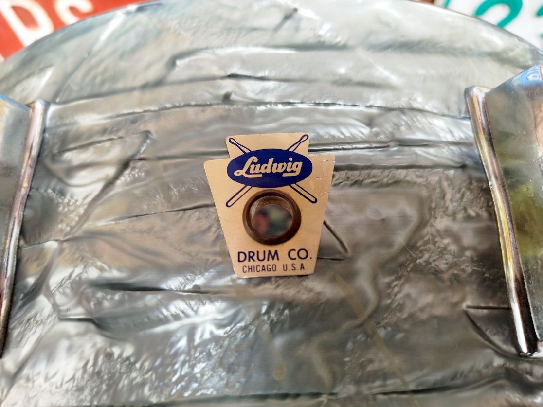 Il badge di transizione ci riporta agli anni 1959/60, quando la famiglia Ludwig riacquista il proprio marchio da C. G. Conn; è curioso considerare che oggi proprio Conn, insieme a Selmer, è l'attuale proprietaria del marchio Ludwig. Corsi e ricorsi storici.