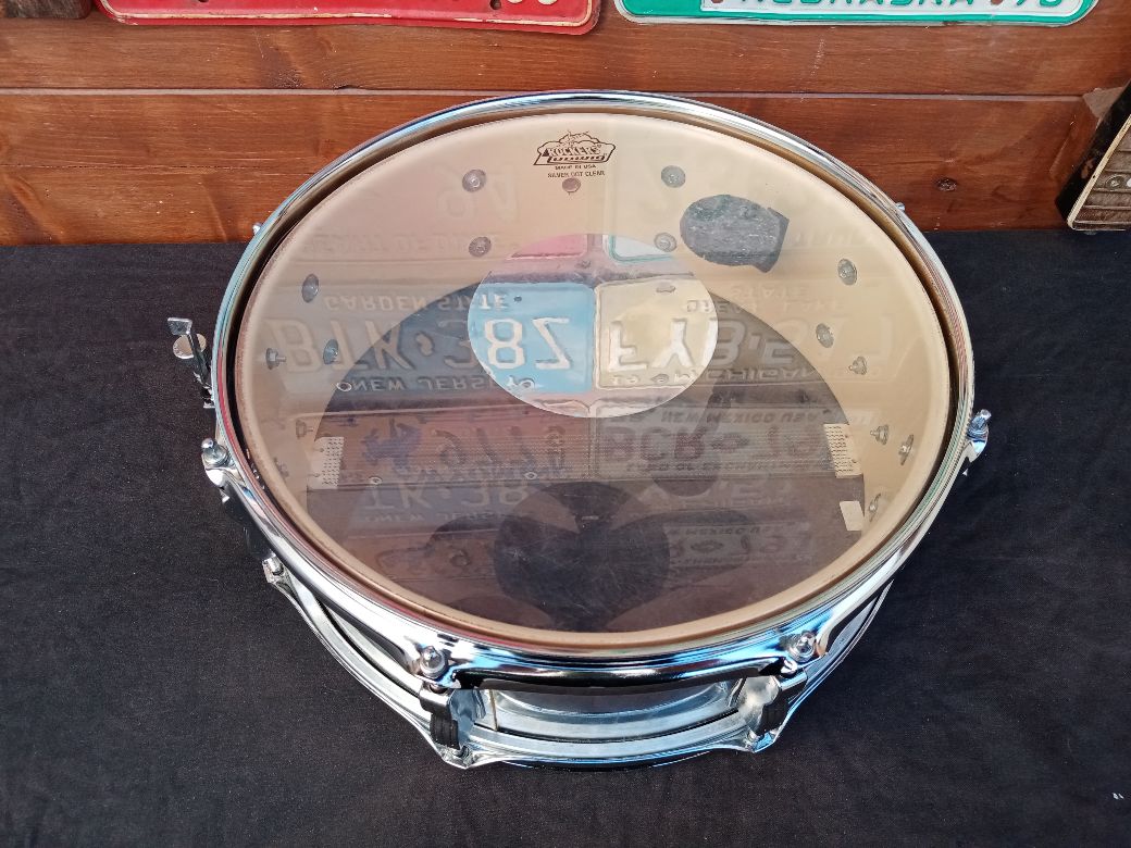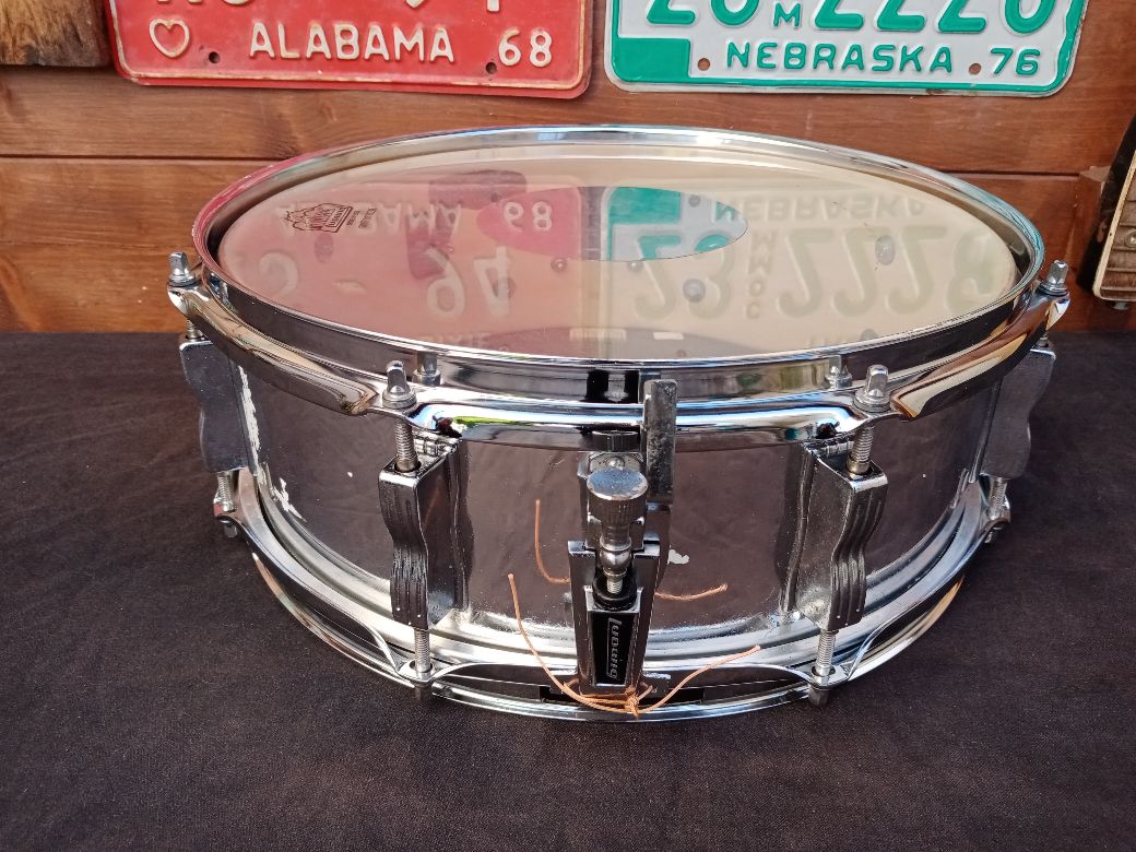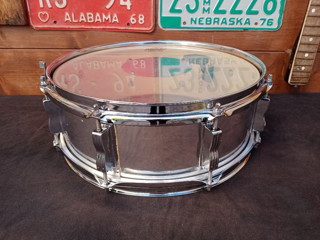 Rullante usato, in buone condizioni, 14"x5"; il rivestimento ha qualche piccola parte rovinata, ma nulla di grave. Il modello Standard 600 fu prodotto tra il 1982 ed il 1988; il fusto è in 4 strati di Acero e Pioppo, il rivestimento è "Chrome-o-Wood", l'interno del fusto mostra una verniciatura di colore beige.