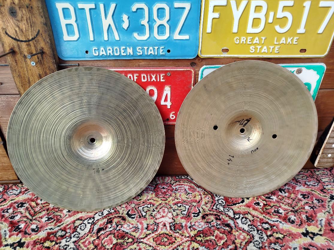 Hi hat 14" usato, in condizioni molto buone e senza difetti a parte le scritte sbiadite. Top 1.069 grammi, bottom 1.307 grammi.