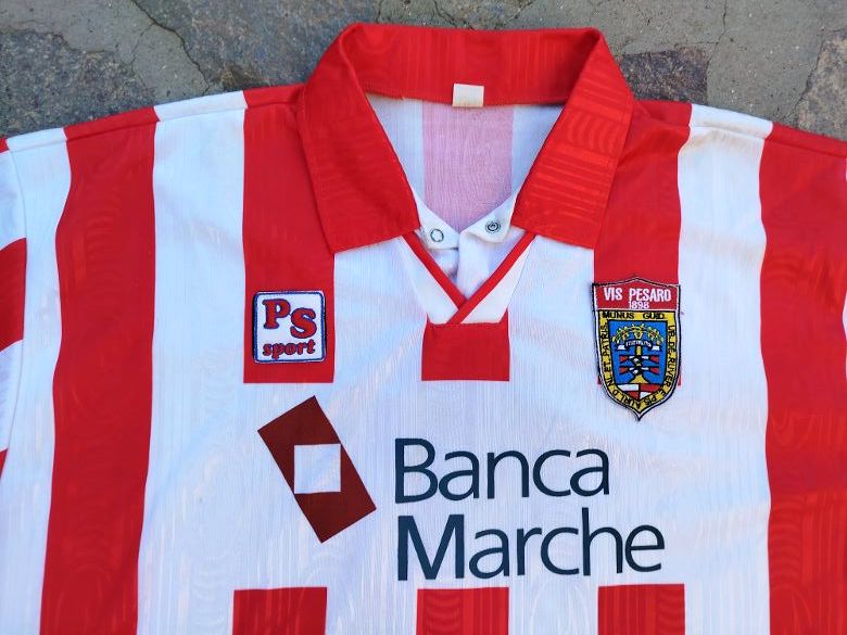 Maglia della squadra marchigiana Vis Pesato, probabilmente indossata in partita ufficiale. Taglia 6, corrispondente ad una XL; 60 cm. da ascella ad ascella.