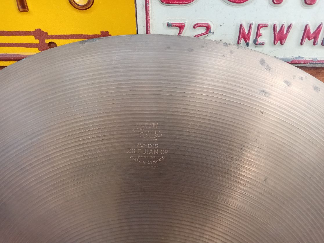 22" Avedis Ride usato risalente ai primi anni '60 (large stamp), in ottime condizioni; non ha ammaccature o botte, davvero nessun tipo di difetto a parte qualche macchia di ossido. 2.460 grammi.